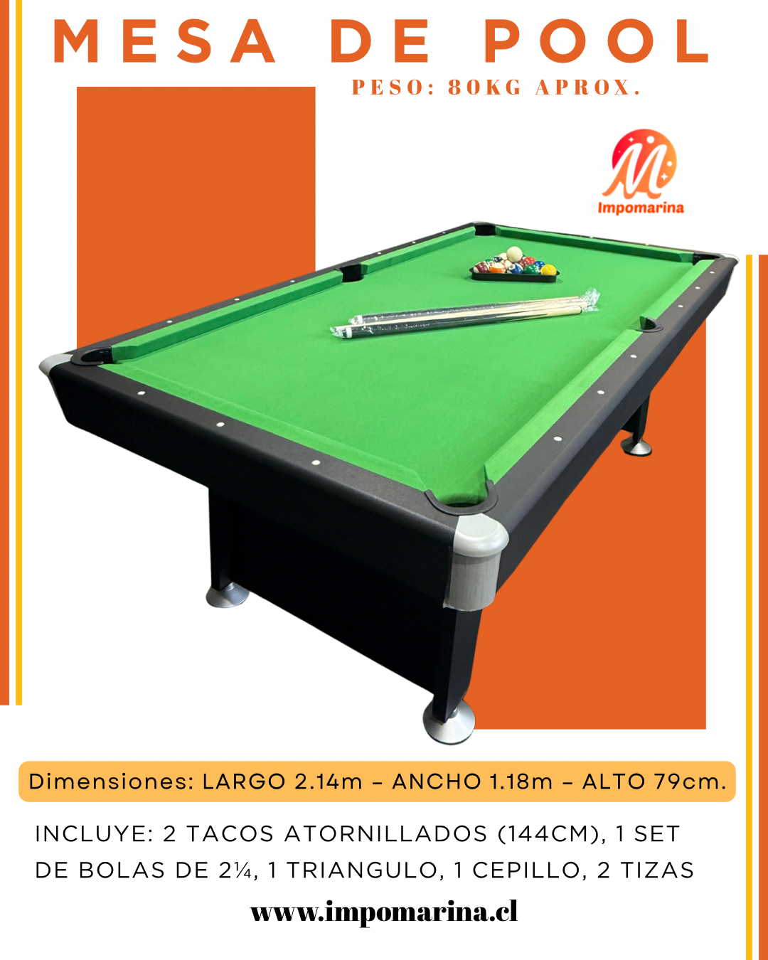 -Mesa de Pool Poolina 2.14m x 1.18m x 79cm + Accesorios