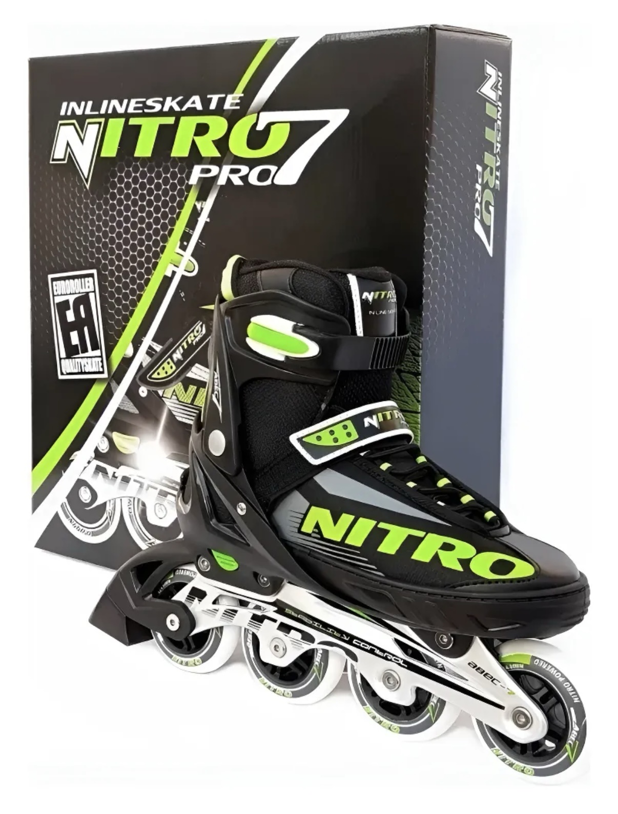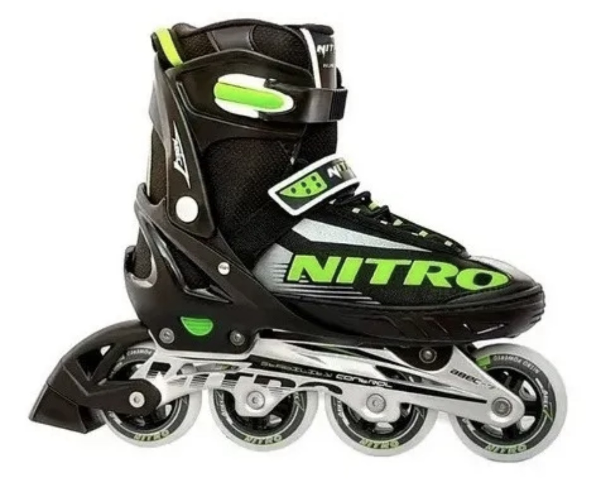 El patín regulable EUROROLLER NITRO 7 es el patín perfecto para disfrutar al aire libre, hecho con materiales de alta resistencia garantizan larga duración gracias a sus ruedas de PU y rodamientos ABEC-7 y su bota rígida de PVC forrada con materiales acolchados permite un calce perfecto y estabilidad a toda prueba, el chasis de aluminio de alta resistencia otorga el peso justo para disfrutar de este deporte por tiempo prolongado.Ruedas de PURodamientos ABEC-7Bota rígida de PVC